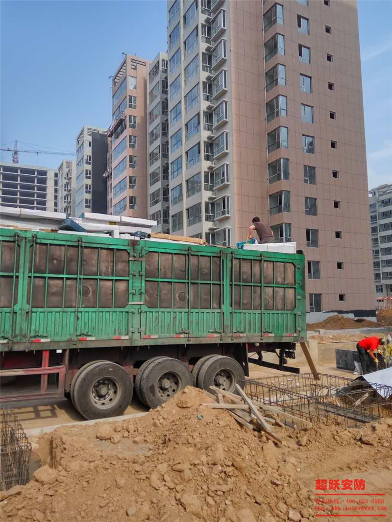 忻州市中海建嘉苑二區(qū)項(xiàng)目部工地防火門(mén)卸車(chē)作業(yè)圖片